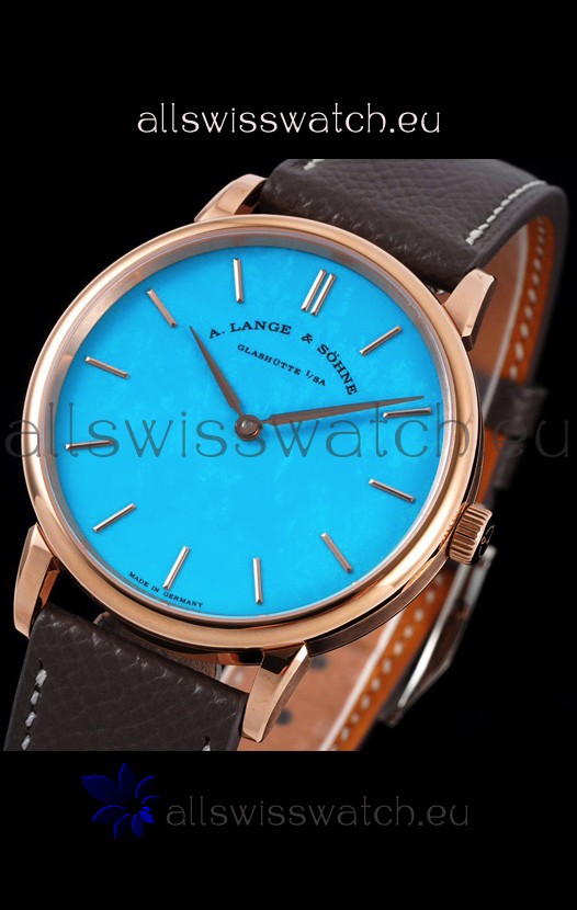 A.Lange & Sohne Saxonia Thin Swiss Replica Watch Rose Gold Case Tiffany Blue Dial