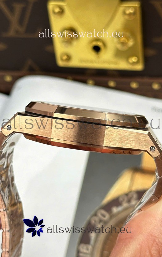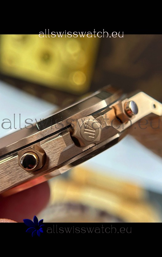 Rose Gold Plating on 904L Stainless Steel Strap completed with AP Markings and Engravings as per the originals and AP Folding Clasp