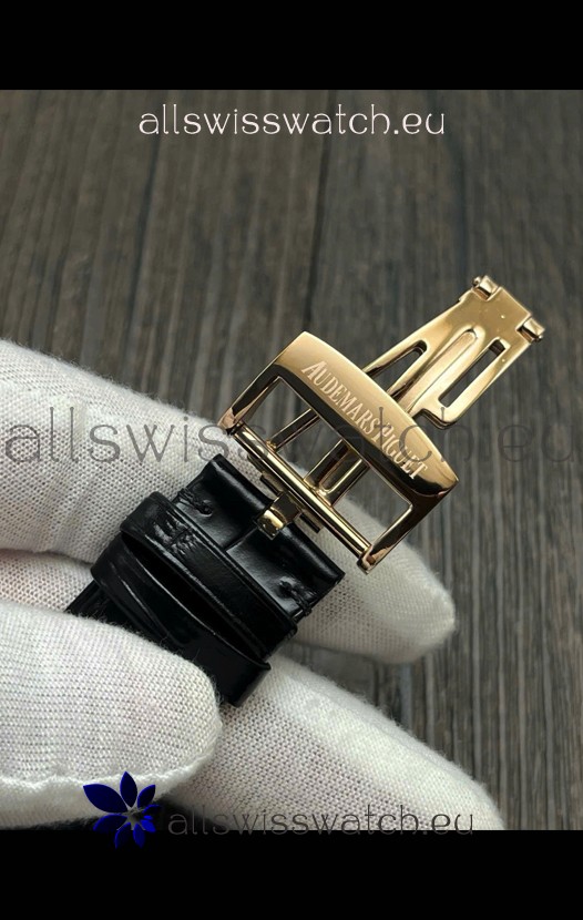 Genuine Leather Strap with AP Fold Buckle complete with Audemars Piguet Markings/Engravings