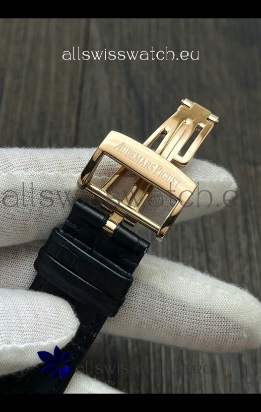 Genuine Leather Strap with AP Fold Buckle complete with Audemars Piguet Markings/Engravings