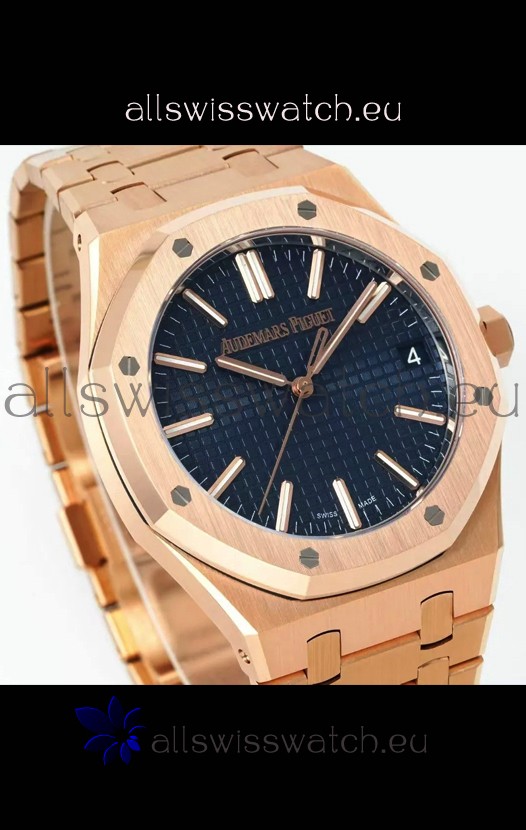 You're reviewing: Audemars Piguet Royal Oak 15510OR 41MM Rose Gold Blue Dial Super Clone Replica Watch