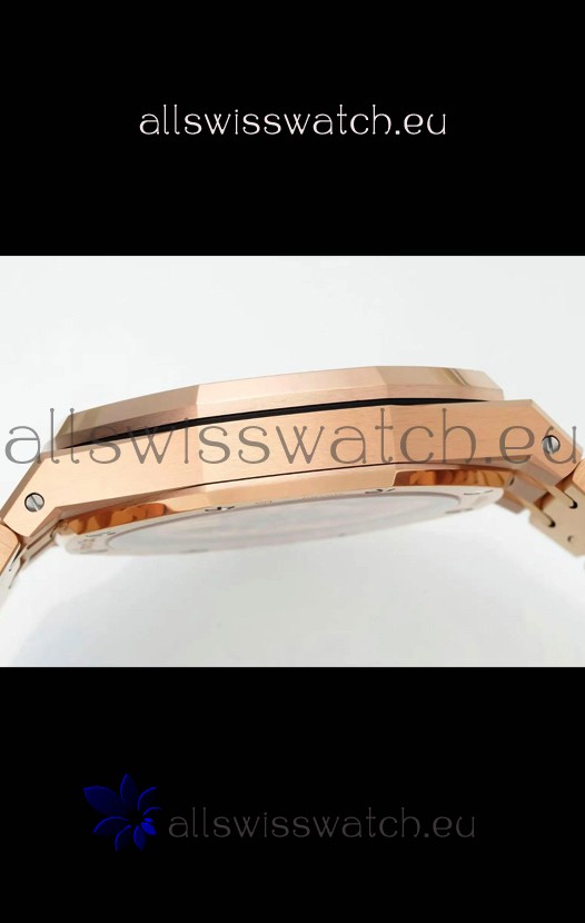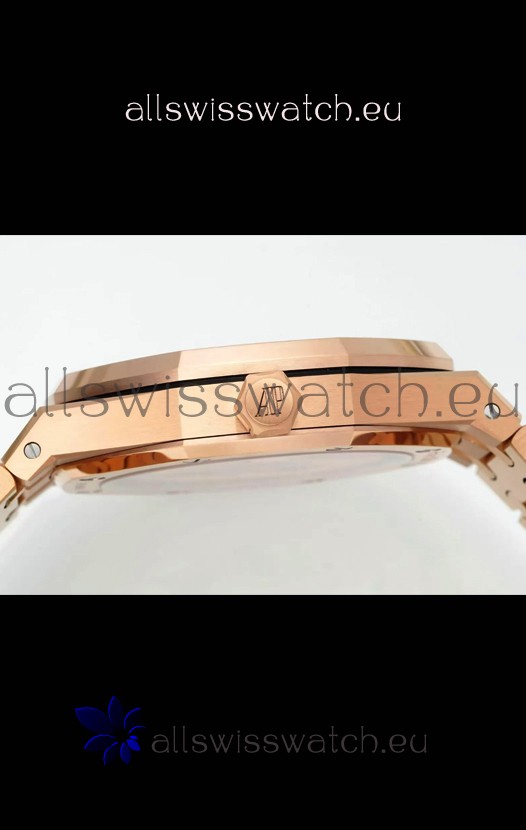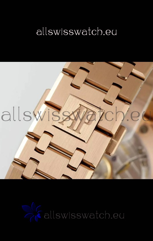 18K Rose Gold Plating on 904L Solid Stainless Steel Strap with smooth edges with AP Folding Clasp complete with AP Markings and Engravings
