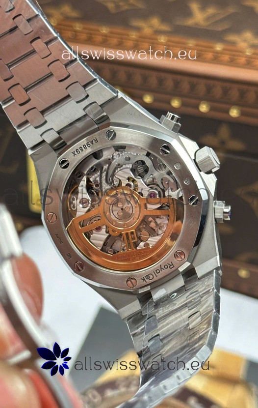 Frosted White Gold Plating on 904L Stainless Steel Strap completed with AP Markings and Engravings as per the originals and AP Folding Clasp