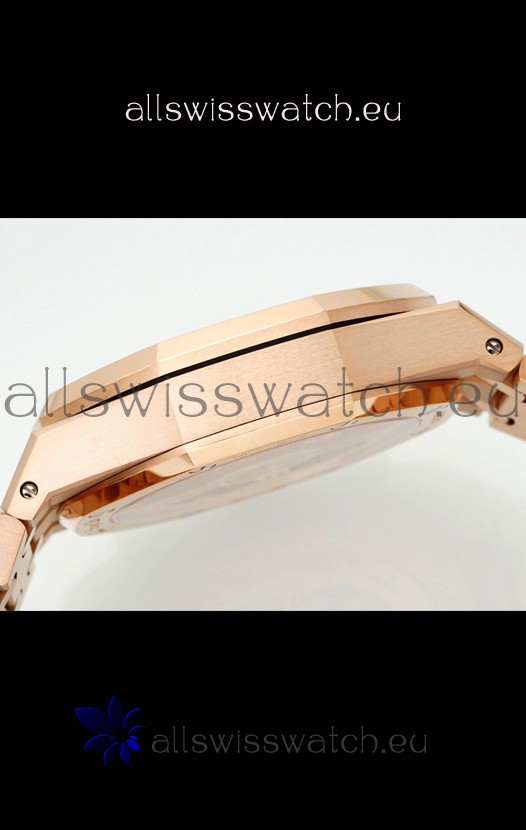 Frosted Rose Gold Plating on 904L Stainless Steel Strap completed with AP Markings and Engravings as per the originals and AP Folding Clasp