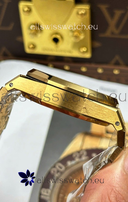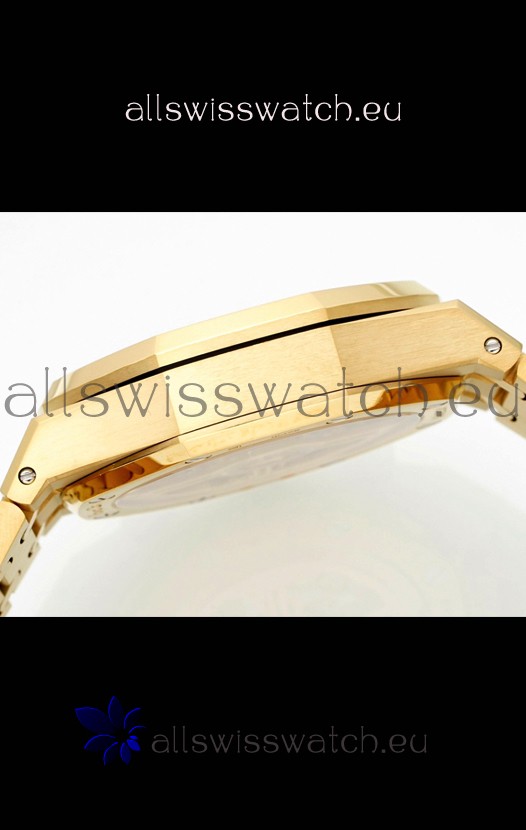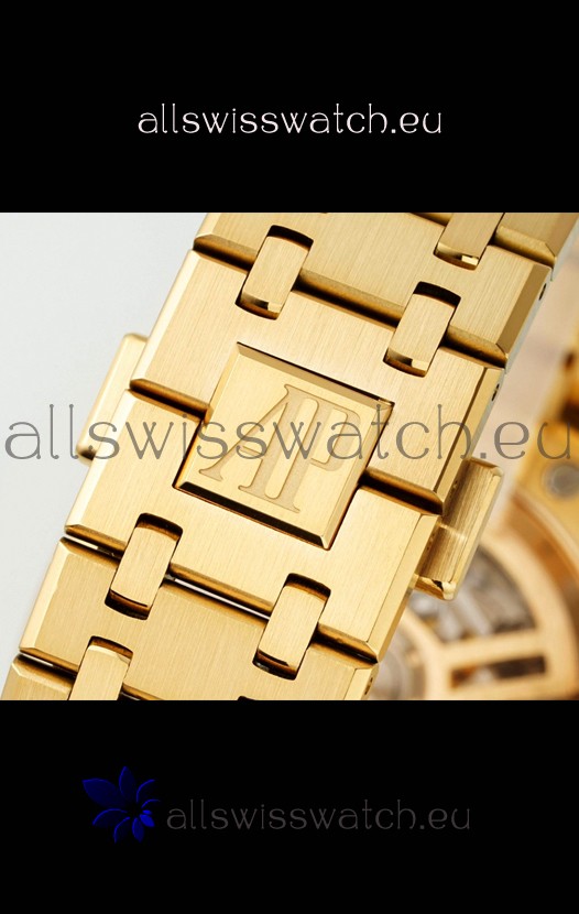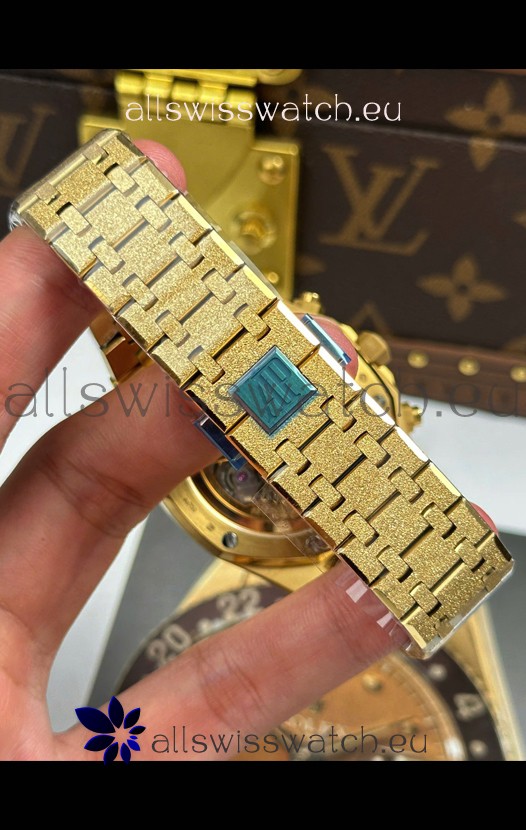 Frosted Yellow Gold Plating on 904L Stainless Steel Strap completed with AP Markings and Engravings as per the originals and AP Folding Clasp