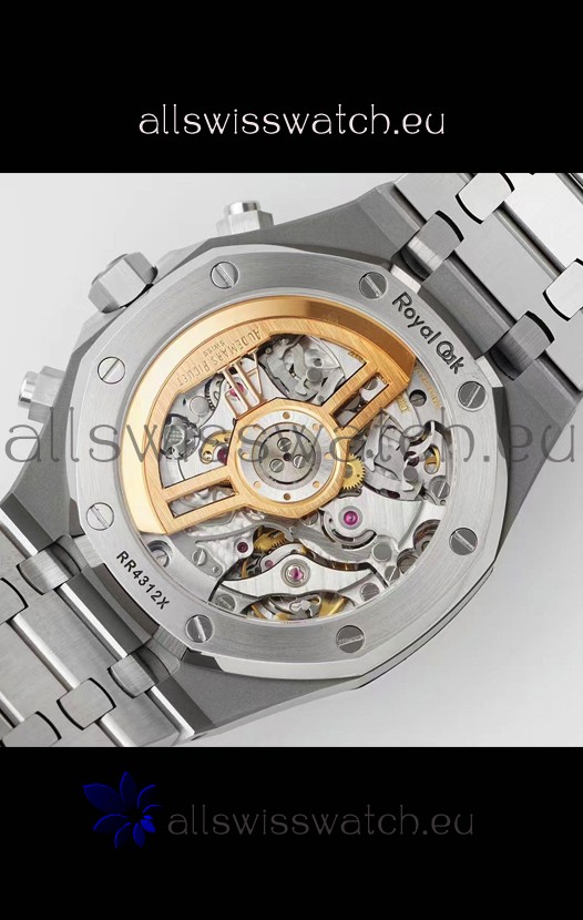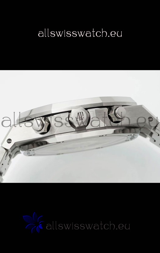 Machinery Layout exactly like Audemars Piguet 4401 Calibre Movement used in Authentic Audemars Piguet Offshore Watches. Built on Genuine Swiss 7753 Movement architecture with Functional stopwatch feature like the authentic with Seconds hand running at the 12 o clock Sub Dial
