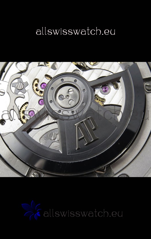 Machinery Layout exactly like Audemars Piguet 3126 Calibre Movement used in Authentic Audemars Piguet Offshore Watches built on Genuine Swiss 7753 Movement architecture with Functional stopwatch feature like the authentic