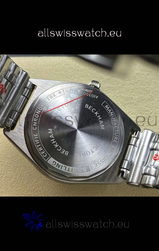 Solid Caseback with Breitling Markings and Engravings.