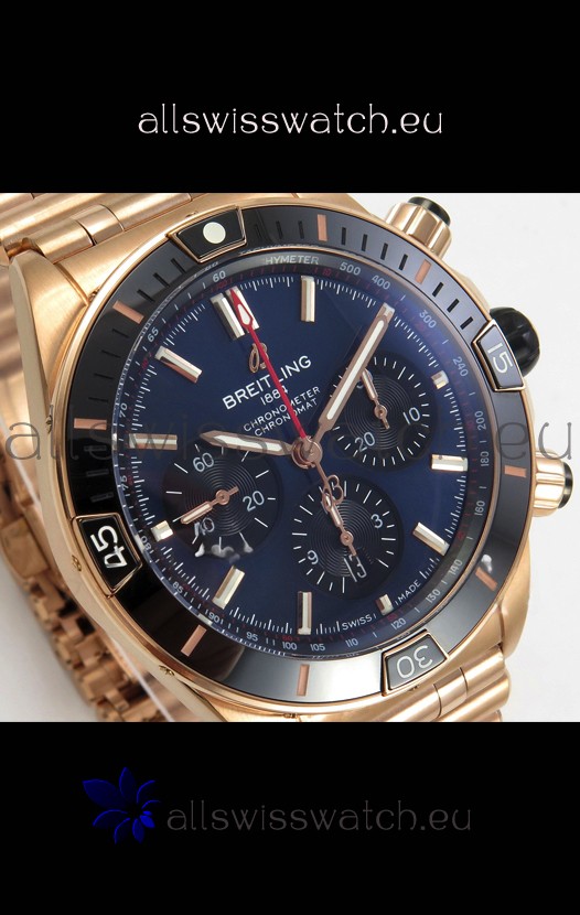 Breitling Chronomat Super Clone B01 42 Edition Swiss Rose Gold Casing Blue Dial