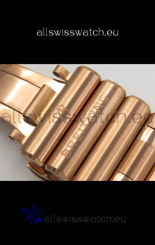 18K Rose Gold Plating on 904L Steel Strap linked with Pins as per the originals complete with Breitling Markings and Engravings as per the originals