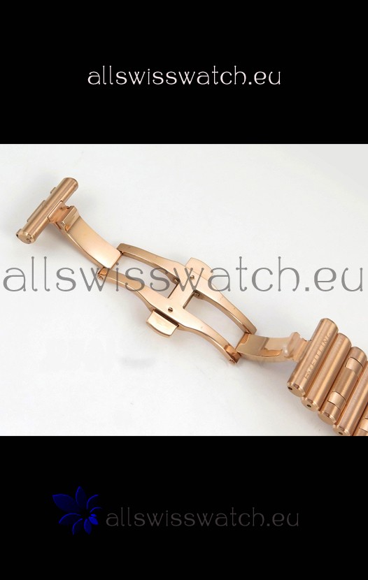 18K Rose Gold Plating on 904L Steel Strap linked with Pins as per the originals complete with Breitling Markings and Engravings as per the originals