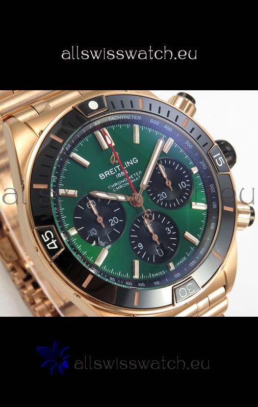 Breitling Chronomat Super Clone B01 42 Edition Swiss Rose Gold Casing Green Dial