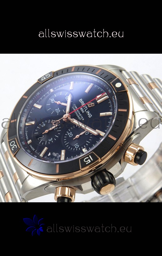 Breitling Chronomat Super Clone B01 42 Edition Swiss Two Tone Black Dial Watch