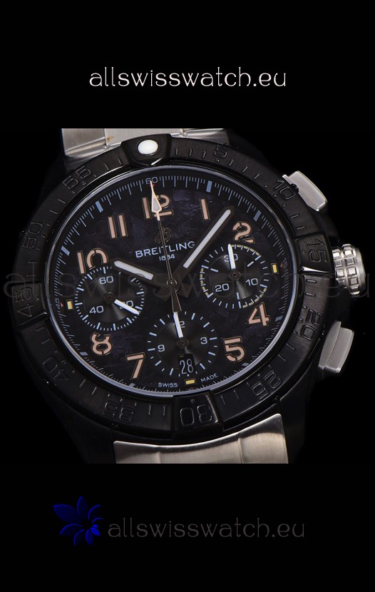 DLC Coating on 904L Steel Case complete with Breitling markings and Details as per the originals.