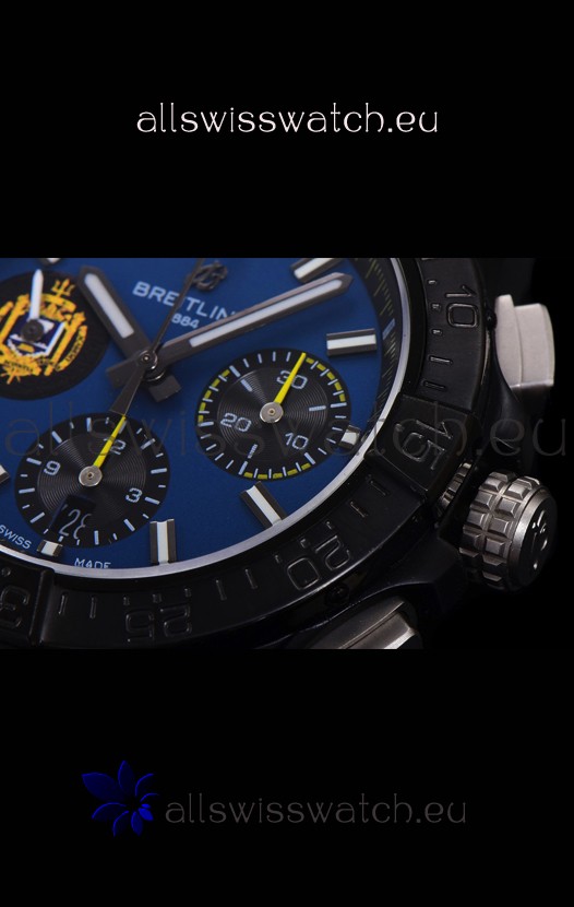 DLC Coating on 904L Steel Case complete with Breitling markings and Details as per the originals.