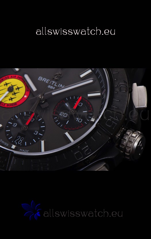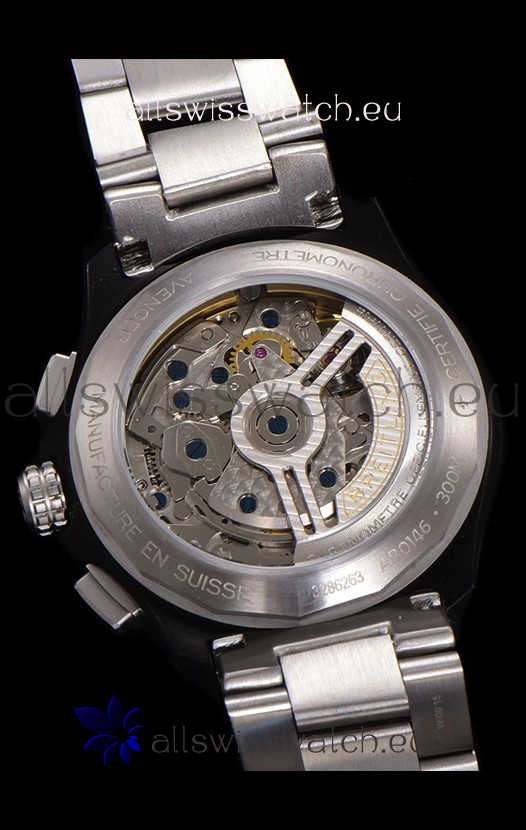 DLC Coating on 904L Steel Case complete with Breitling markings and Details as per the originals.