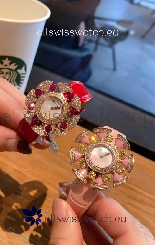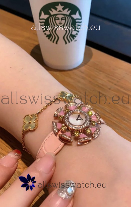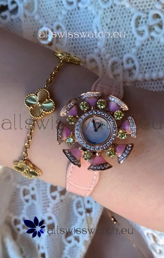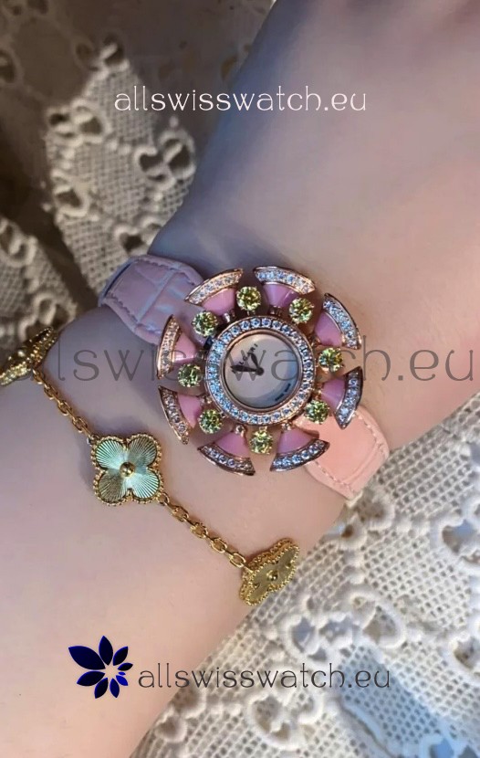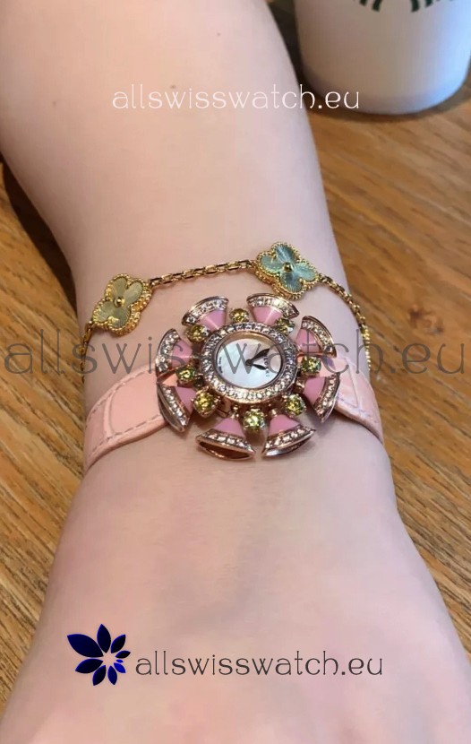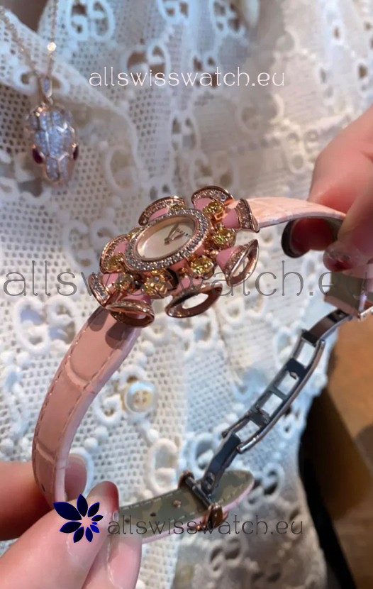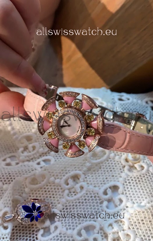 Bvlgari Divas's Dream Edition Watch in Rose Gold Casing - Diamonds Paved Bezel Swiss Replica