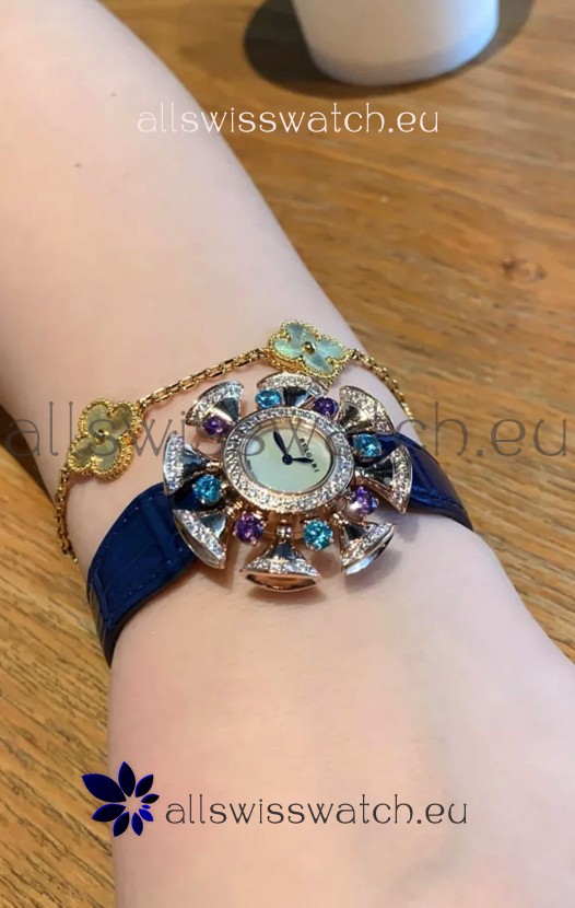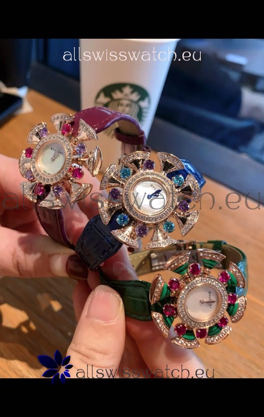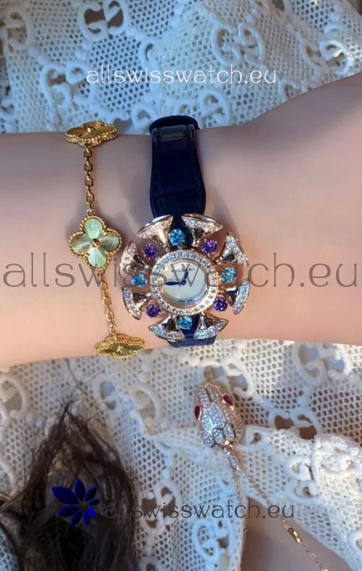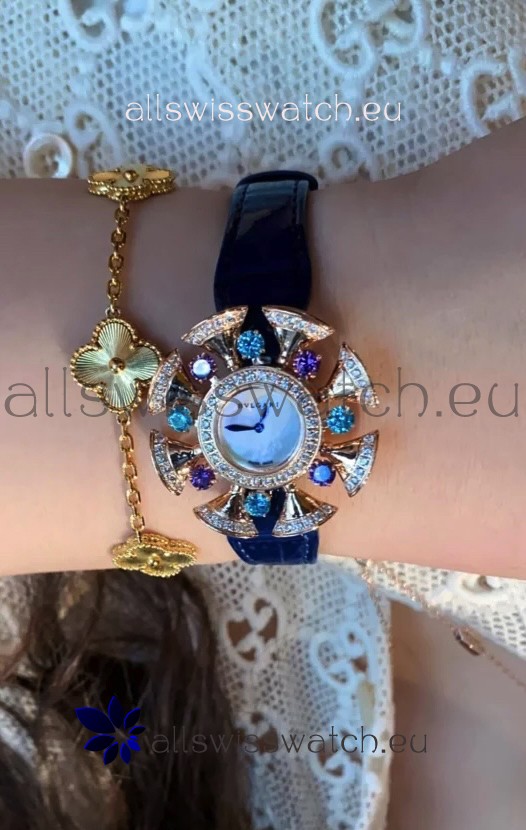 Bvlgari Divas's Dream Edition Watch in Rose Gold Casing - Diamonds Paved Bezel Swiss Replica