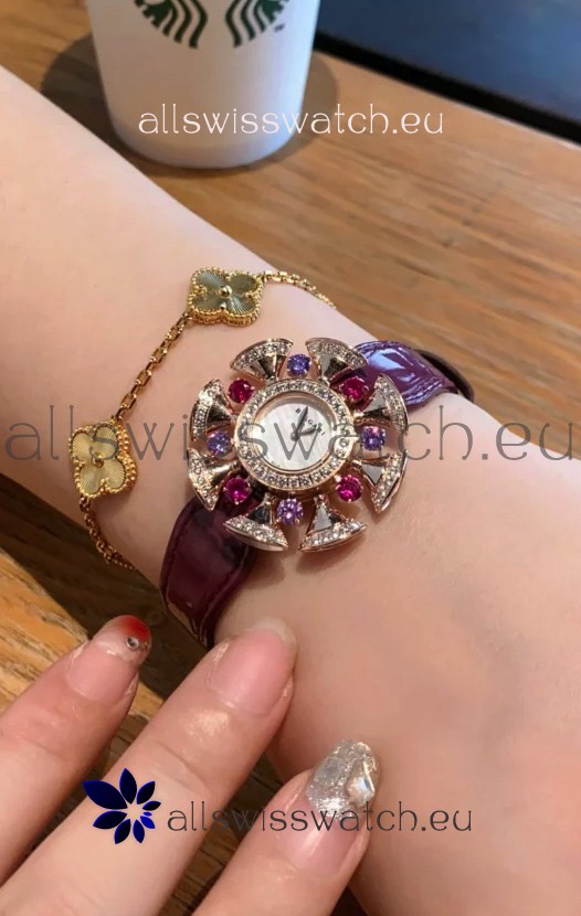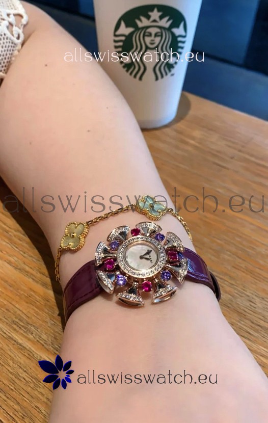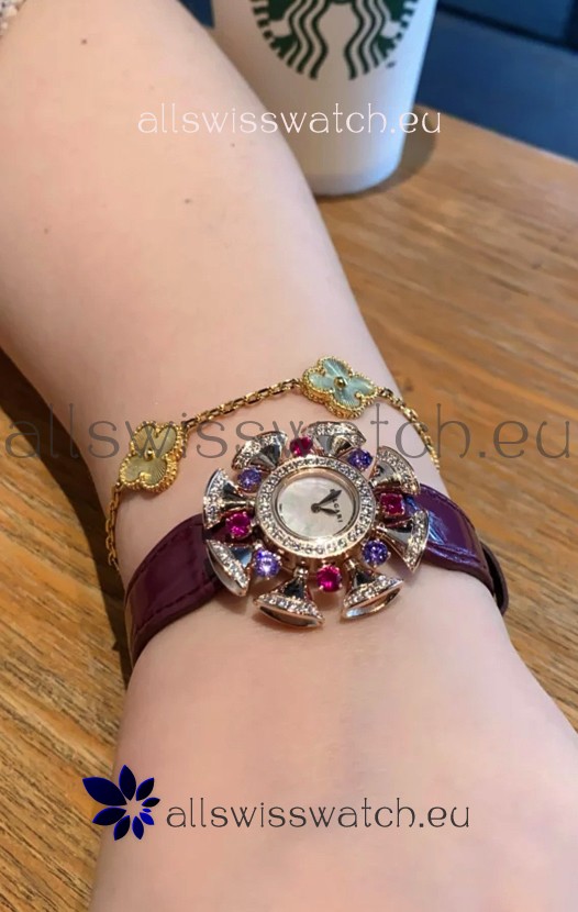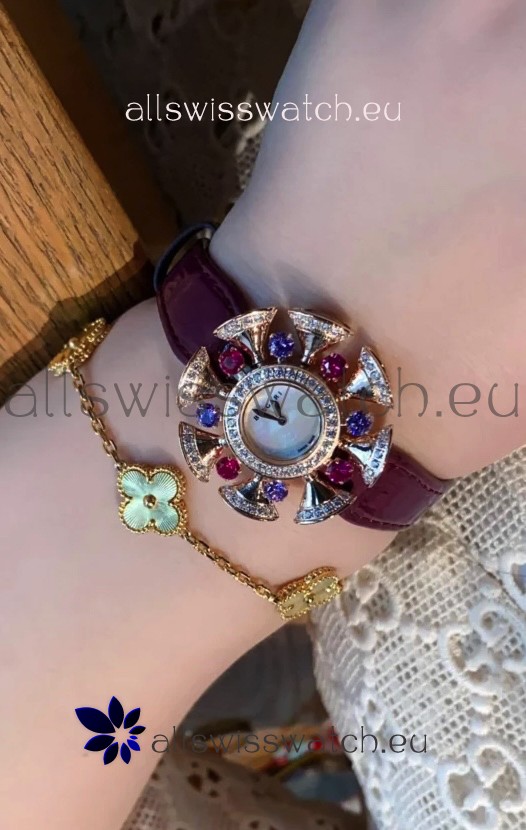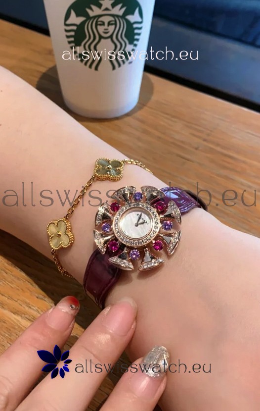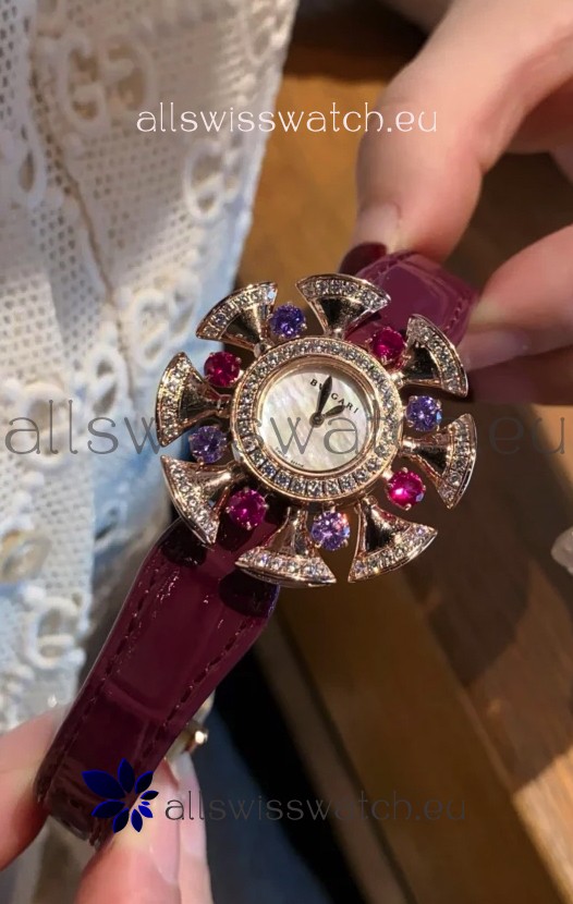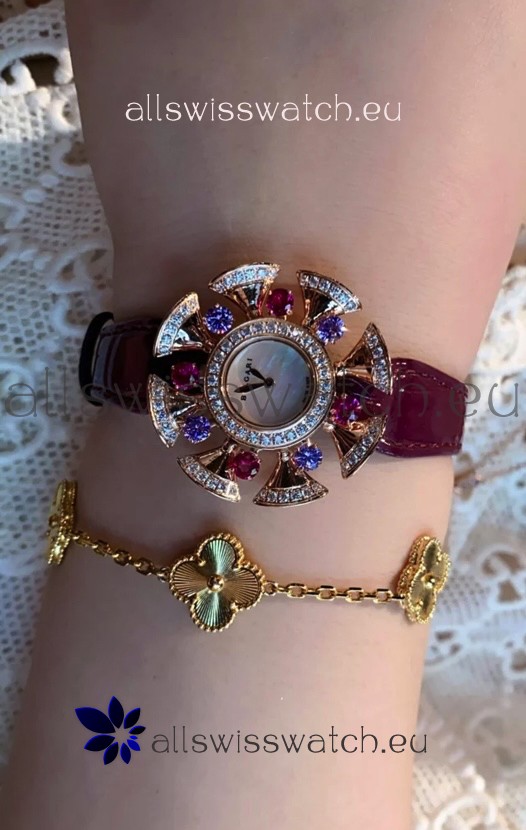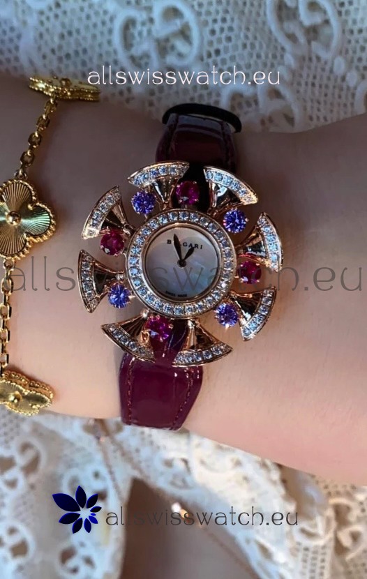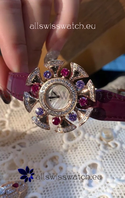 Bvlgari Divas's Dream Edition Watch in Rose Gold Casing - Diamonds Paved Bezel Swiss Replica