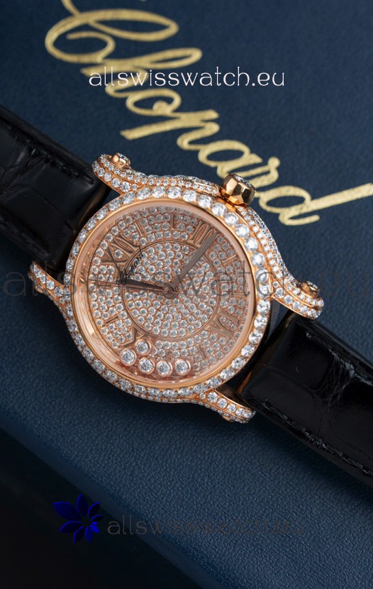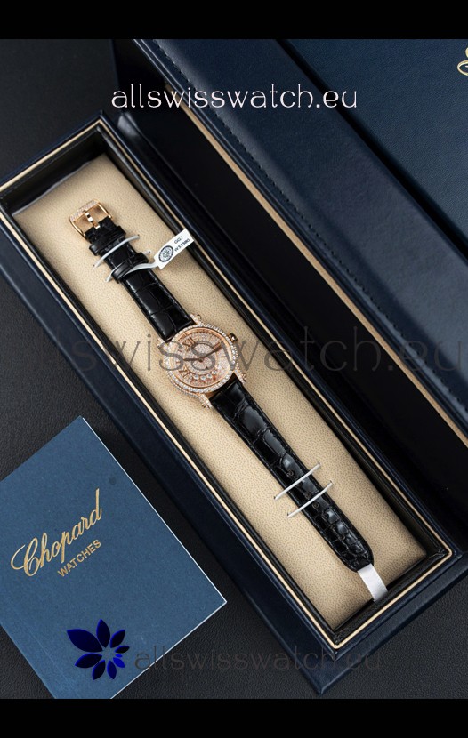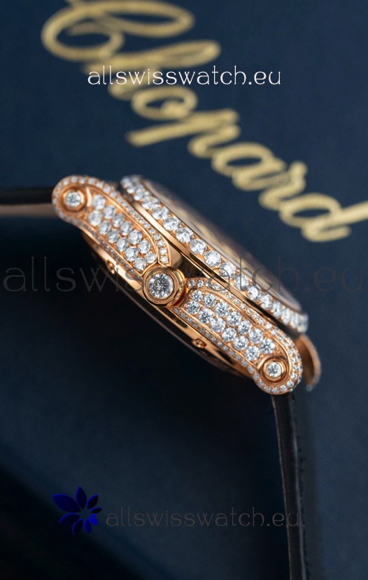 18K Rose Gold Plating on 904L Stainless Steel Casing with complete with Chopard Markings as per the Originals.