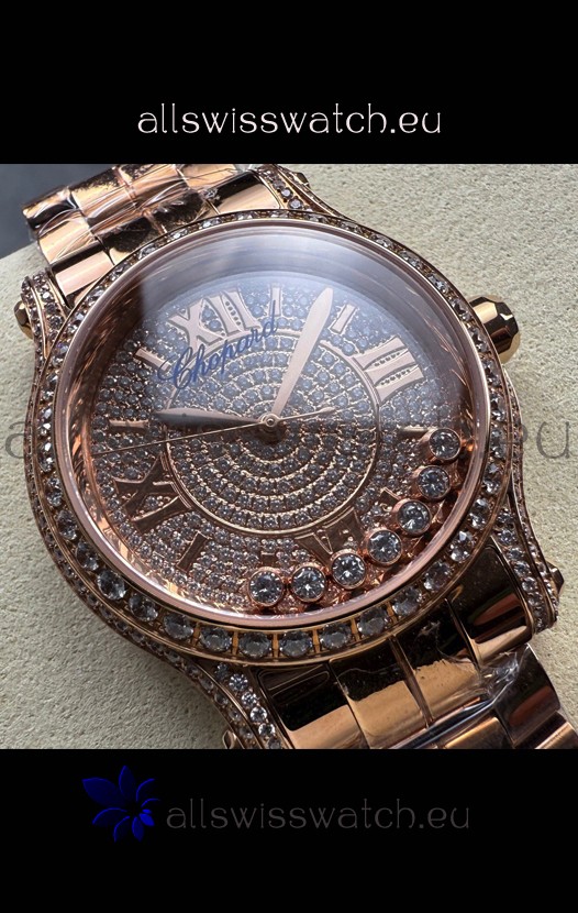 Chopard Happy Sport 1:1 Mirror Swiss Automatic Replica Watch 36MM in Rose Gold Casing Mossanites Dial