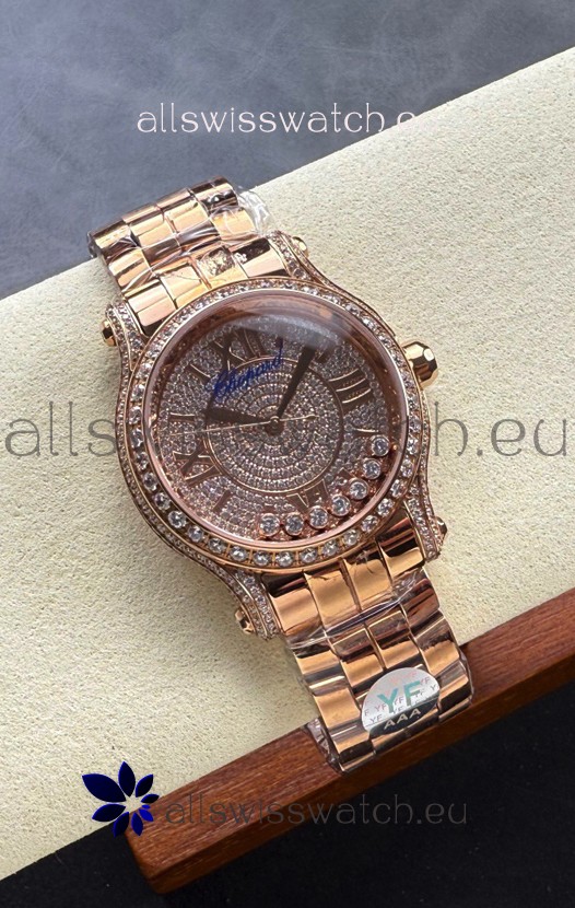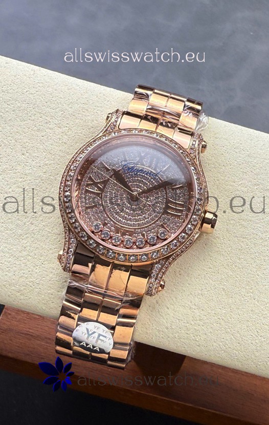 Chopard Happy Sport Super Clone Automatic Watch 36MM in Rose Gold Casing Mossanites Dial