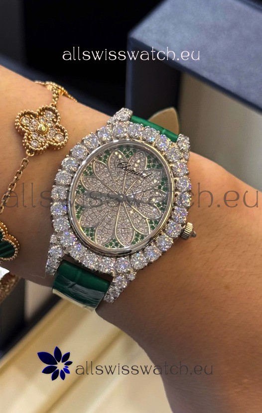 Chopard Super Clone L'Heure du Diamant Mossanites Stainless Steel Watch 34MM