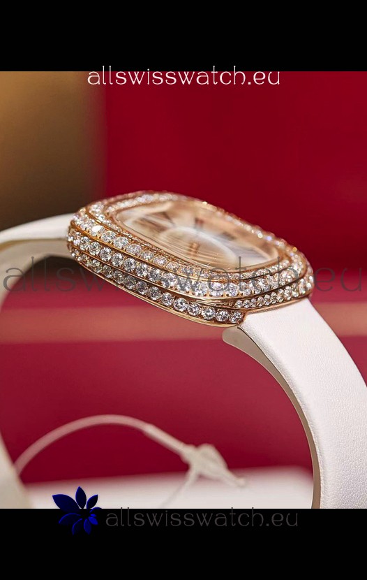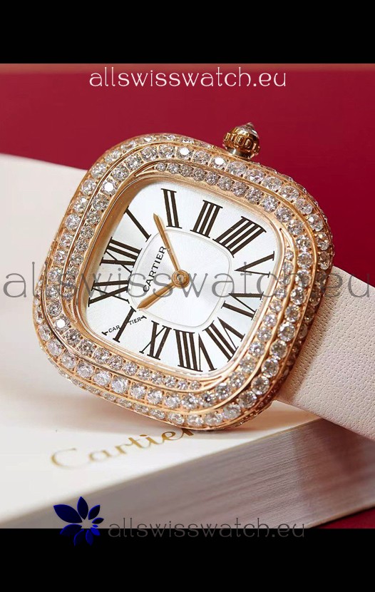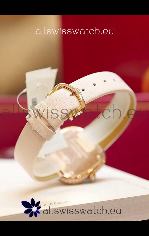 Coussin De Cartier Rose Gold Swiss Replica Watch White Strap