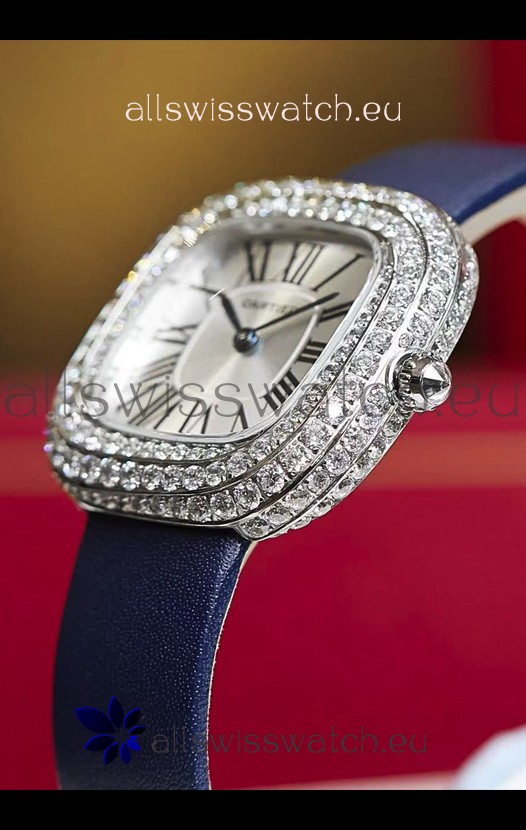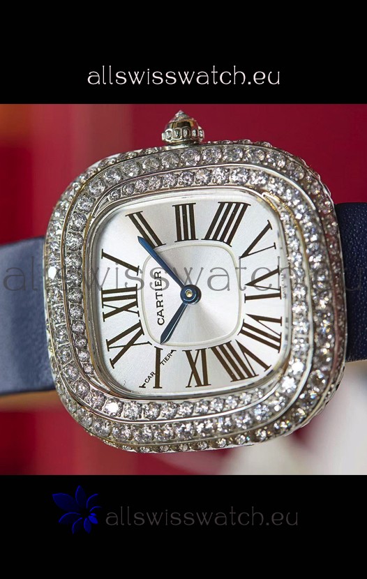 Coussin De Cartier Steel Watch Swiss Replica Watch Blue Strap