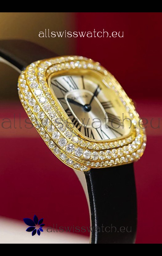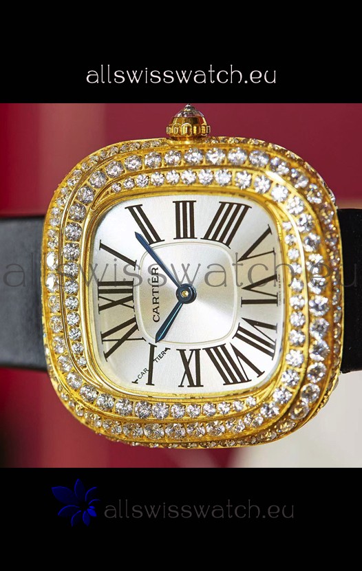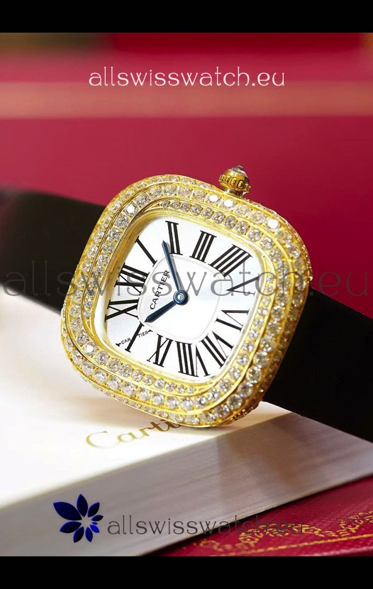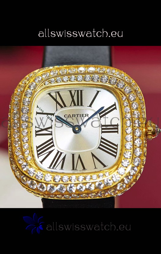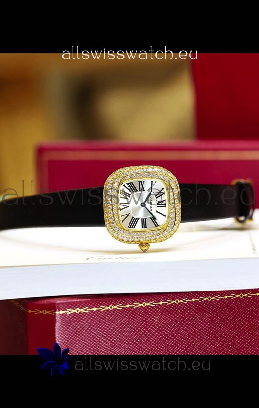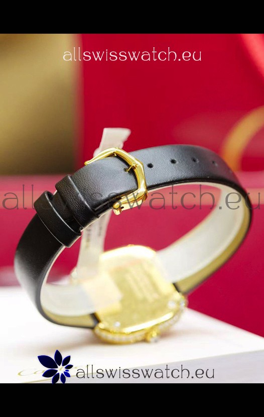 Coussin De Cartier Yellow Gold Swiss Replica Watch Black Strap