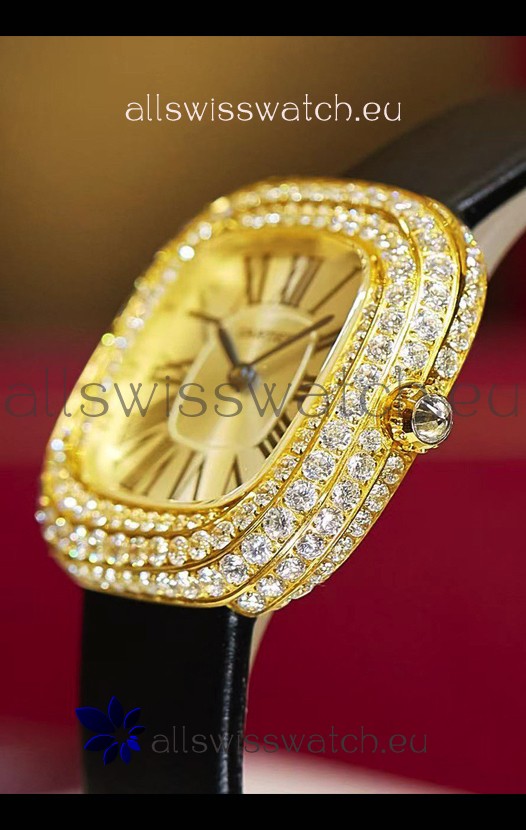 18K Yellow Gold Plating on 904L Stainless Steel Case with solid Case back complete with Cartier Markings and Engravings