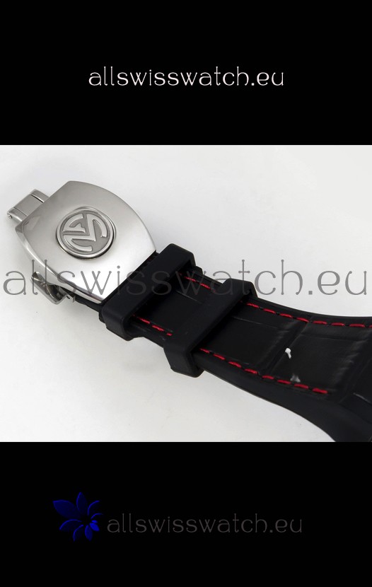 Genuine High Quality Hybrid Rubber/Leather Clad Strap with Franck Muller Markings and Engravings with Stainless Steel Folding Clasps