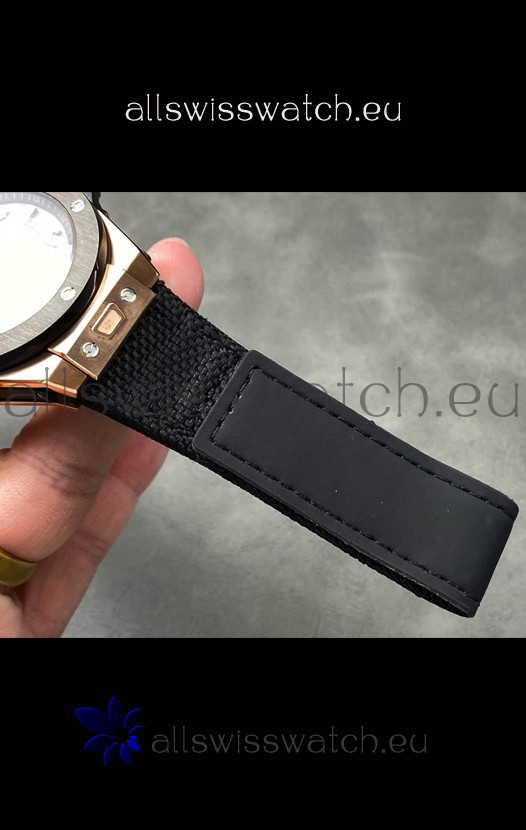 Nylon Strap with Steel Folding Clasp complete with Hublot Markings and Engravings.