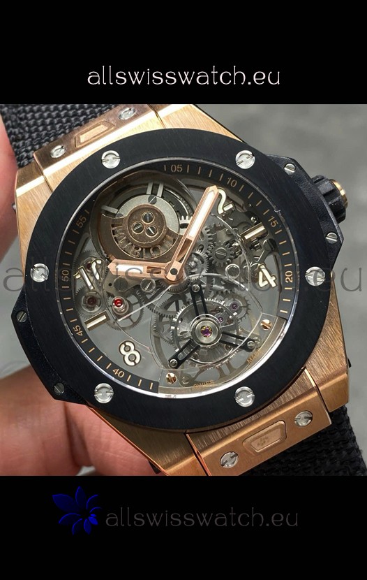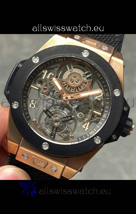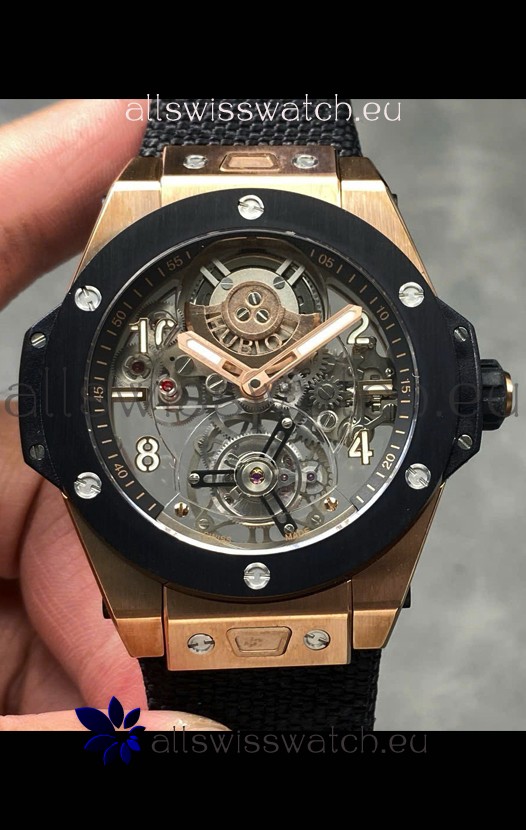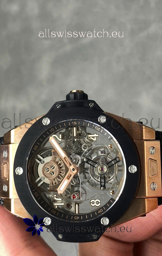 Hublot Big Bang Tourbillon Rose Gold Casing Ceramic Bezel Watch in 45MM 1:1 Mirror Replica