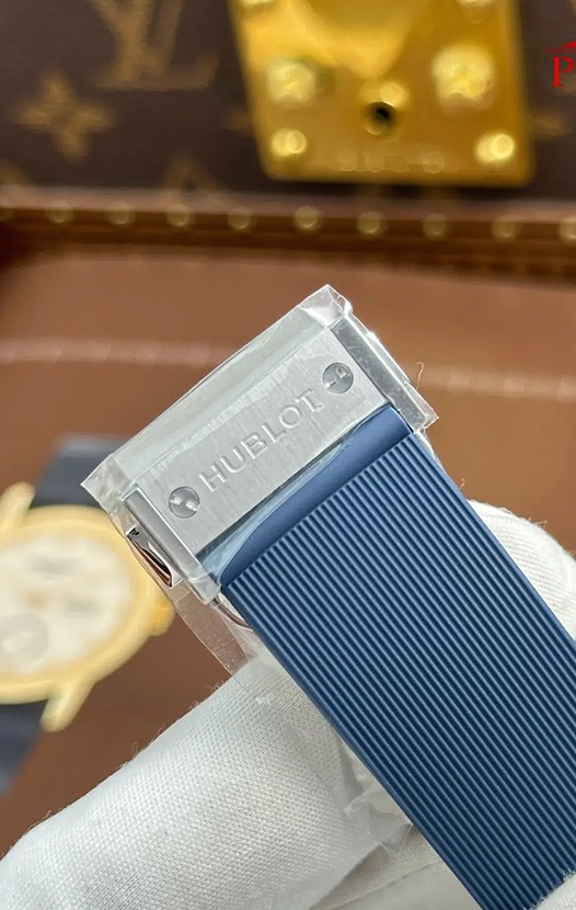 Genuine Rubber Strap with Stainless Steel Folding Clasp complete with Hublot Markings and Engravings.