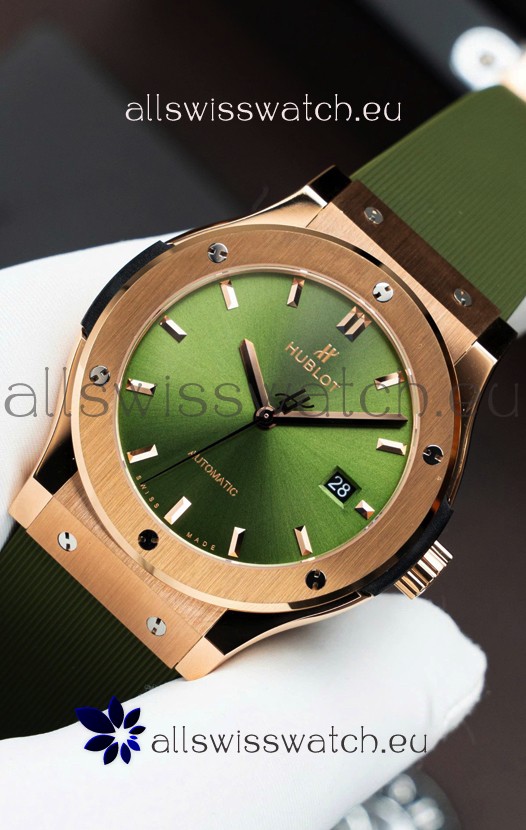Hublot Super Clone Classic Fusion Rose Gold Green Dial 42MM Watch