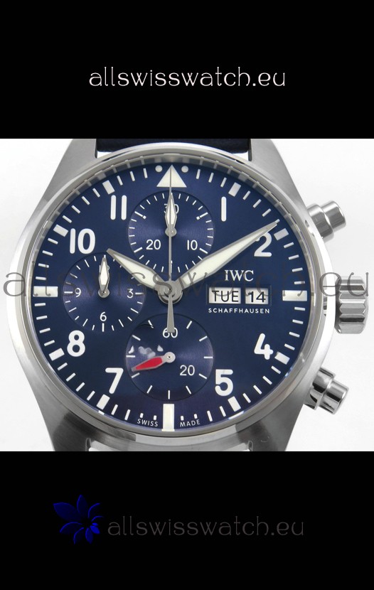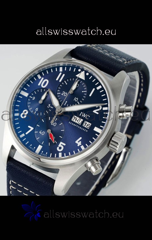 IWC Super Clone Pilot Chronograph Edition Blue Dial Leather Swiss Replica Watch