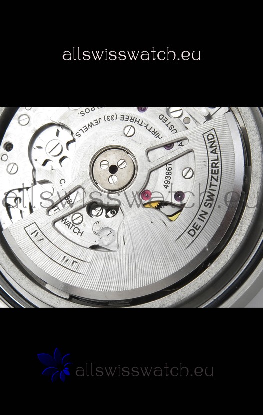 Base 7750 Movement Modified to Resemble the IWC 69385 Movement. Platinum Decodated Plate and Rotors. The Most Identical Machinery setup when compared with the Originals.