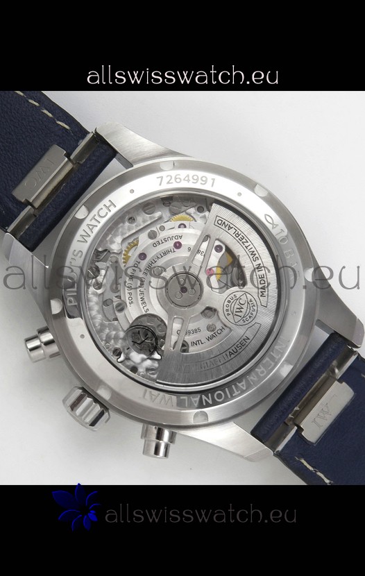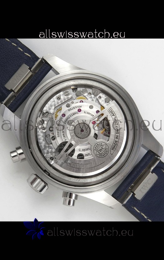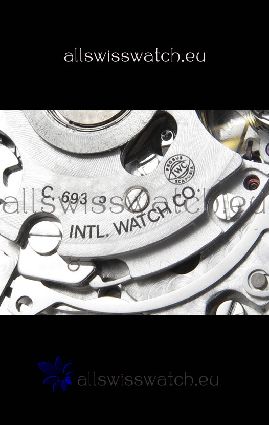 Base 7750 Movement Modified to Resemble the IWC 69385 Movement. Platinum Decodated Plate and Rotors. The Most Identical Machinery setup when compared with the Originals.