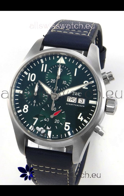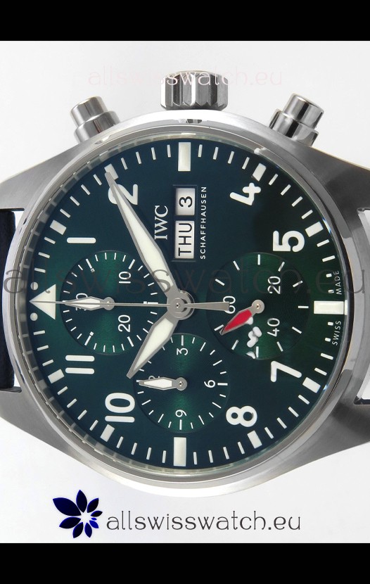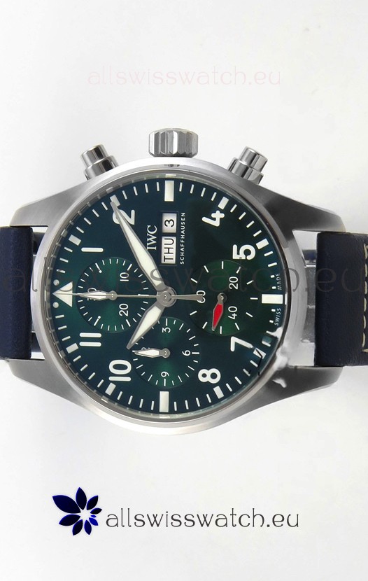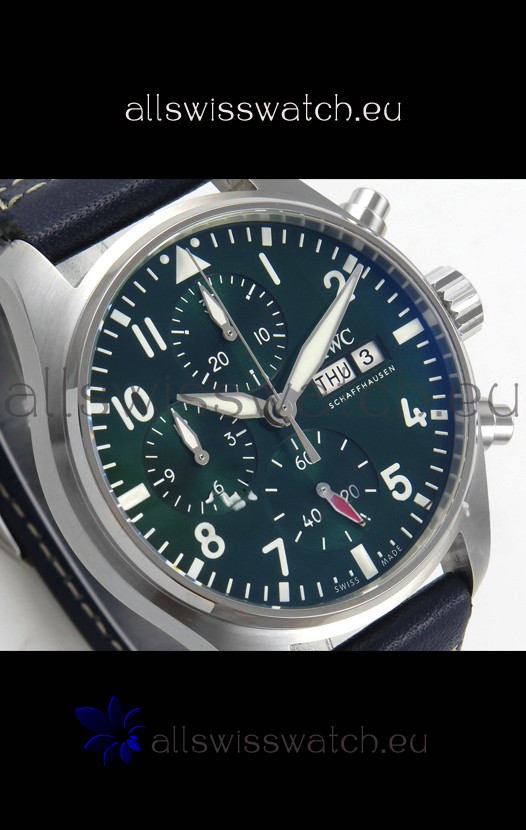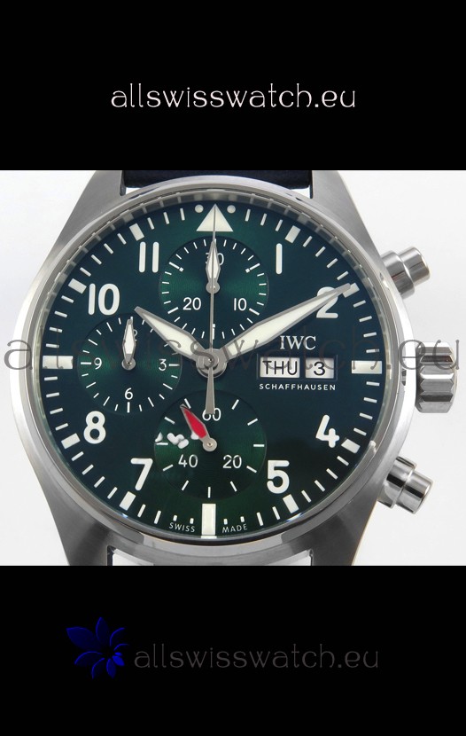 IWC Super Clone Pilot Chronograph Edition Green Dial Leather Swiss Replica Watch