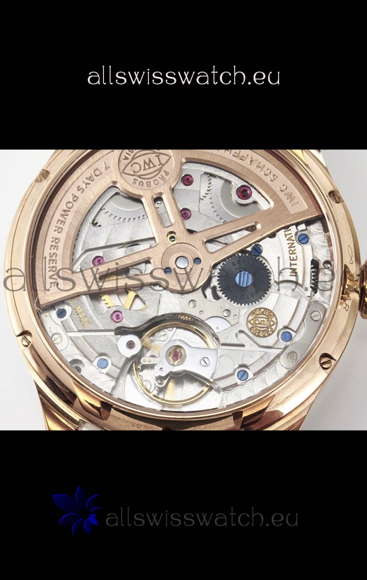 18K Rose Gold Plating on 904L Polished Solid Stainless Steel Case with IWC Markings and Engravings