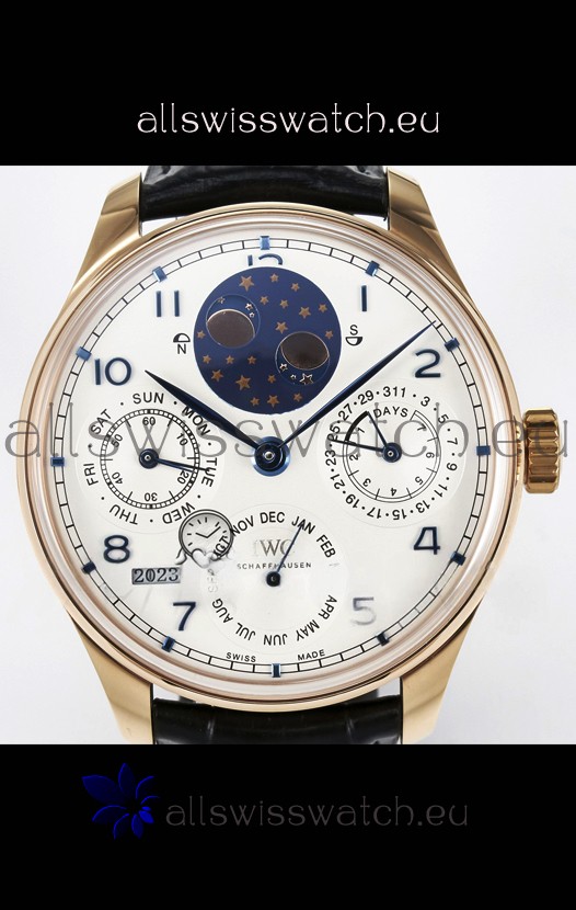 IWC Portuguese Perpetual Calendar Rose Gold Swiss Replica Watch REF. IW503302