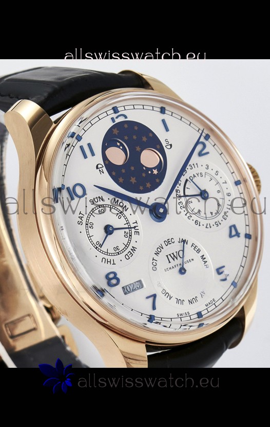 You're reviewing: IWC Super Clone Portuguese Perpetual Calendar Rose Gold White Dial Replica Watch