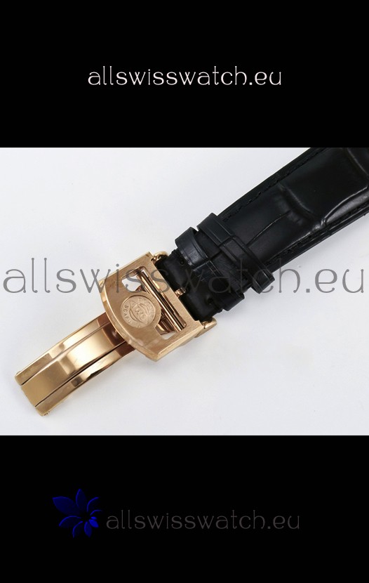 Genuine Leather Strap with IWC Markings and Engravings with Tang 18K Rose Gold Plated Steel Buckle