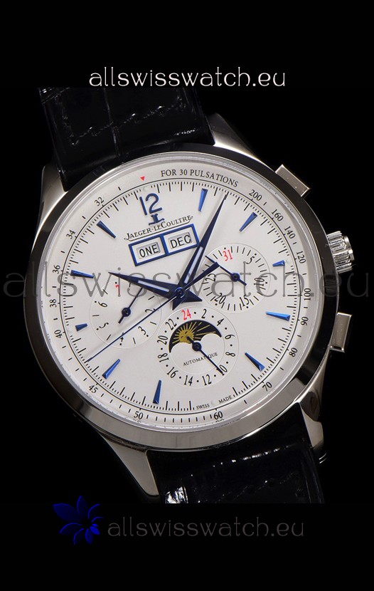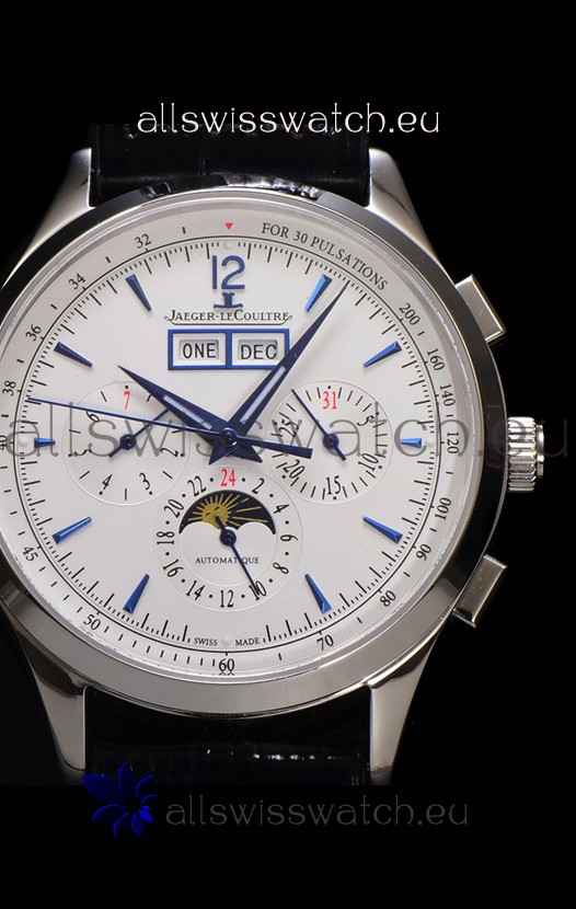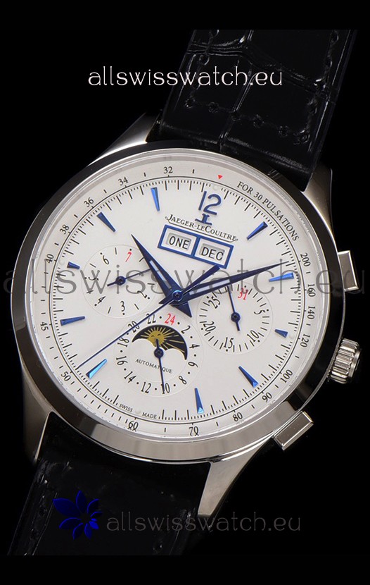 Jaeger LeCoultre Master Control Chronograph Calendar Steel Casing White Dial Watch