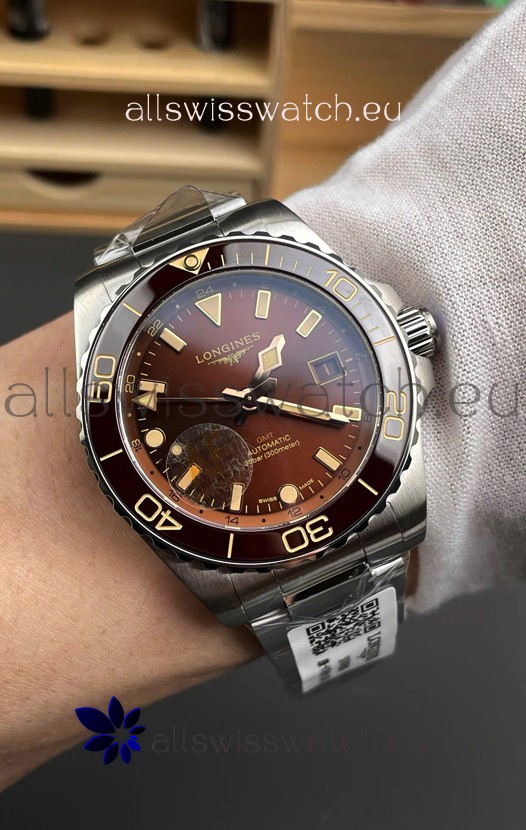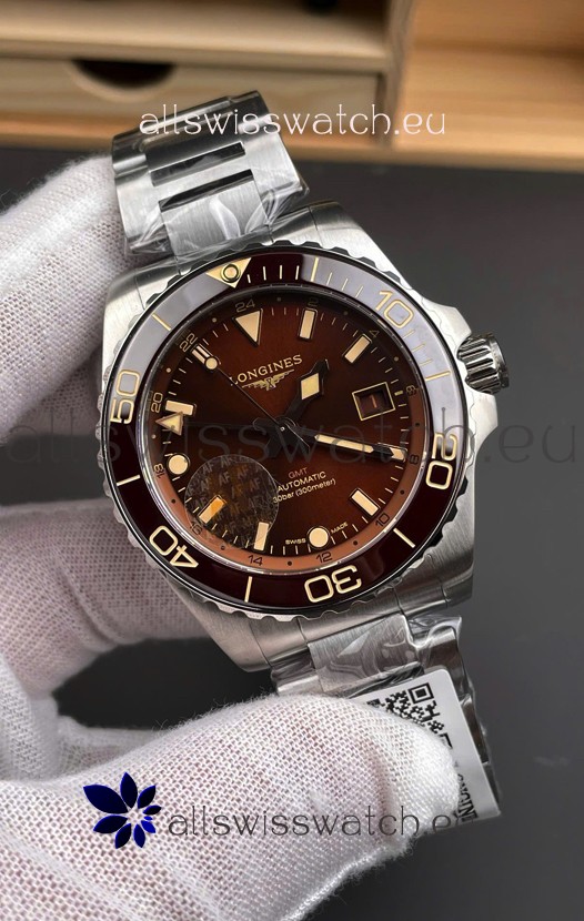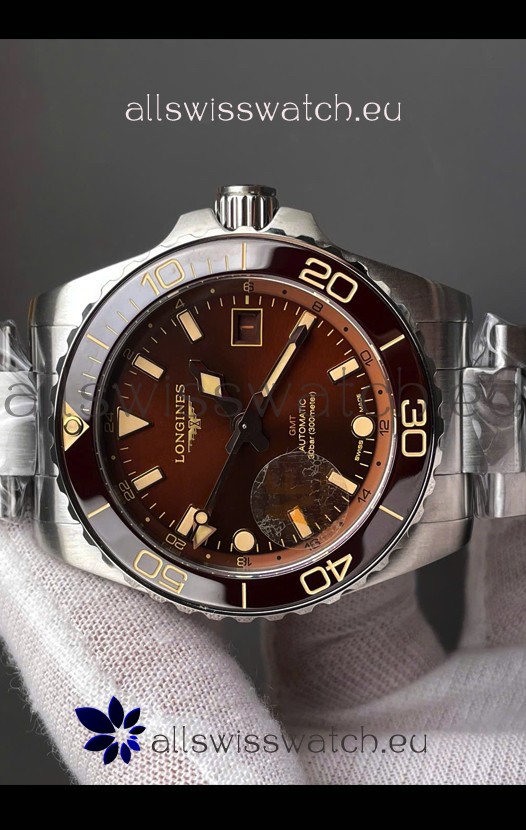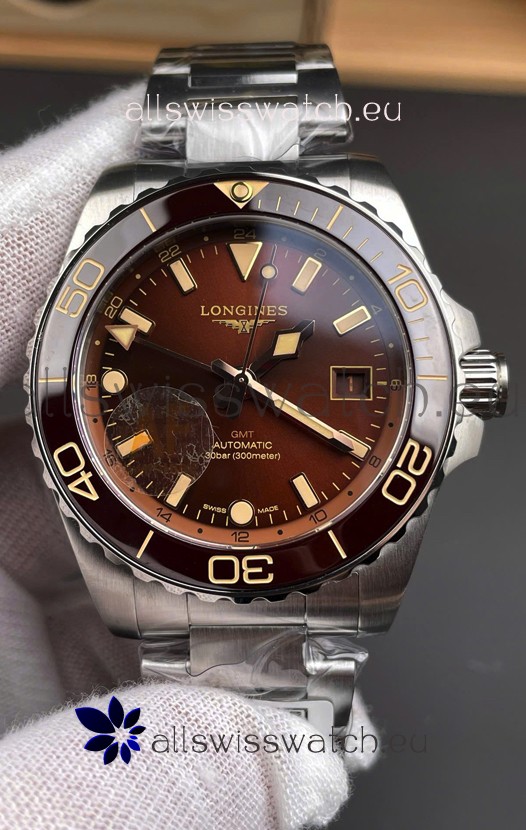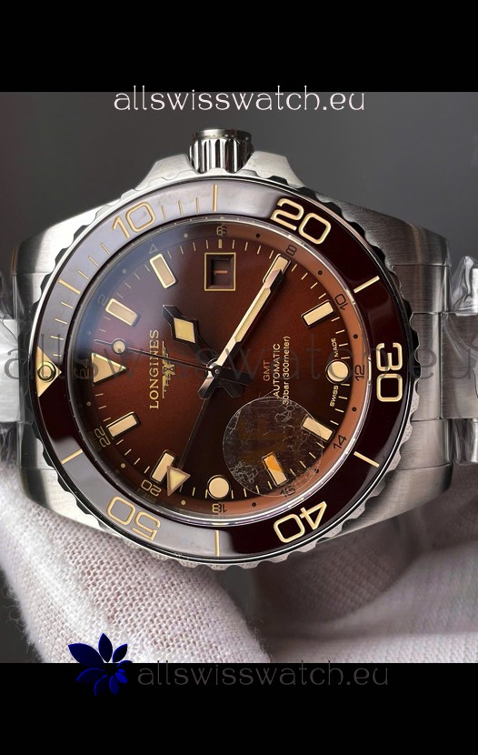 Longines HydroConquest GMT 1:1 Mirror Swiss Replica Watch in Brown Dial Steel Strap