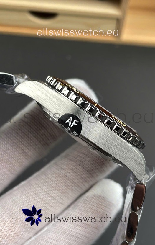 Brown dial with Superlumed Hour Markers and Bi-Directional Rotating Bezel. Functional Fourth GMT Hand.