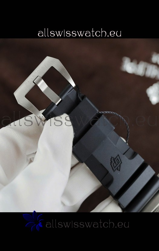 Black Rubber Strap with Titanium Tang Buckle complete with Panerai Markings and Engravings