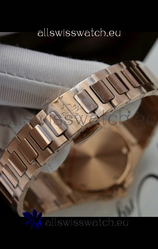 18K Rose Gold Plating on 904L Stainless Steel Strap with Steel Folding Clasp complete with Patek Philippe Markings.