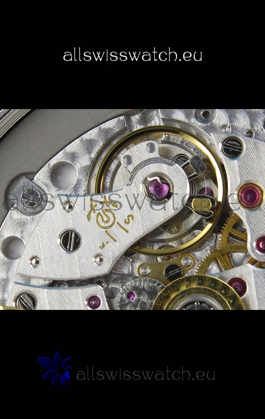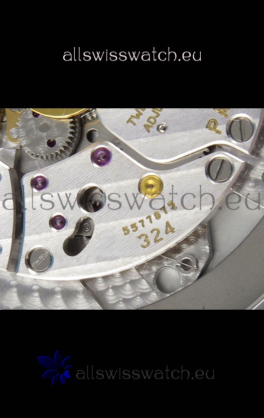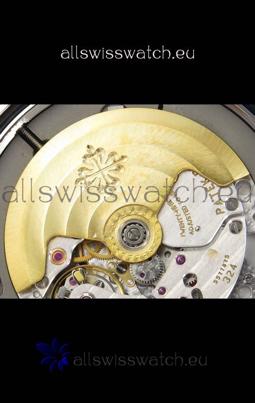 Genuine Swiss 9015 Movement assembled to Resemble the Authentic Patek Philippe PP 324 CS Calibre Style Movement. Updated Rotor, Bridged and Engravings on Movement.